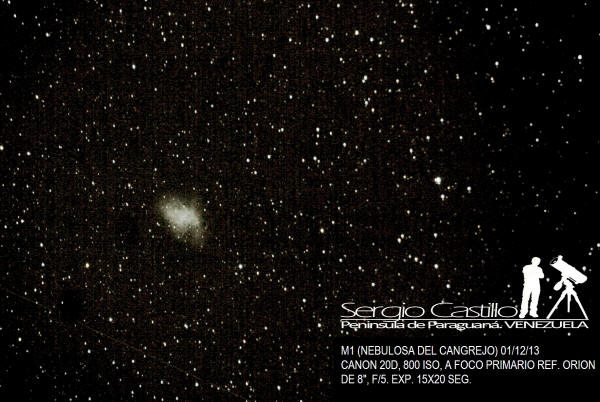 Nebulosa del Cangrejo - M1 – 01 de diciembre de 2013. Crédito de la imagen: Arturo Castillo, Punto Fijo, Estado Falcón, Venezuela.