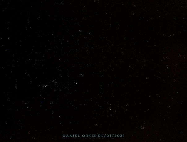Constelaciones Orión, Tauro y Cochero. 03 de enero de 2021. Cámara de celular. Crédito: Daniel Ortiz, ALDA, Barquisimeto, Estado Lara, Venezuela. |