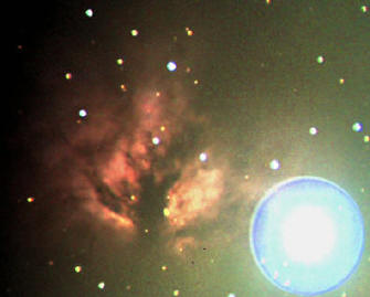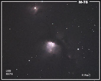 Nebulosa M78 en la constelación de Orión. Famosa por el astrónomo aficionado Jay McNeill que encontró una nueva nebulosa cerca de ella. Imagen del 20 de enero de 2004. Autor: Rafael Pire. |