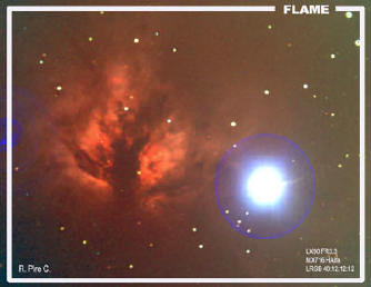 Nebulosa de la Flama (NGC 2024), en la constelación de Orión. Imagen del 30 de diciembre de 2003. Autor: Rafael Pire. |