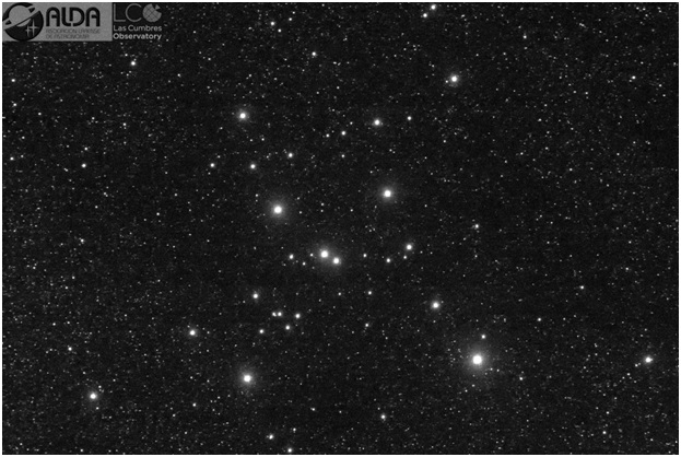 La toma planificada y solicitada al consorcio Las Cumbres Observatory, LCO, por el equipo de Astrofotografía de ALDA dentro del programa de Astrofotografía de Objetos Messier de la asociación, fue capturada por uno de los telescopios de 0,4m de la red de telescopios robóticos del proyecto LCO el 15 de agosto de 2020, integra 822s de exposición con filtros B/V/rp. Procesado en PS CS5.