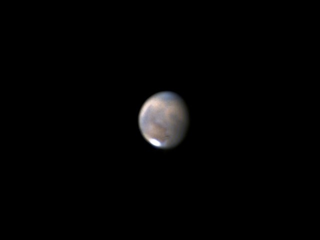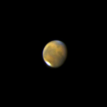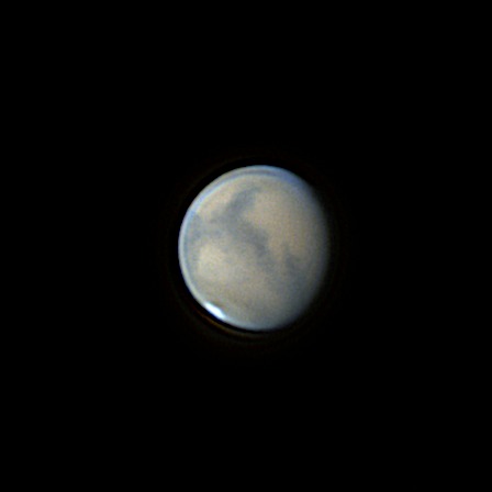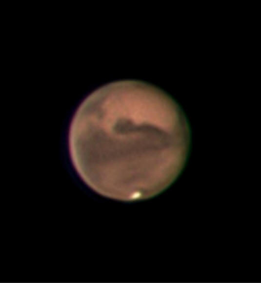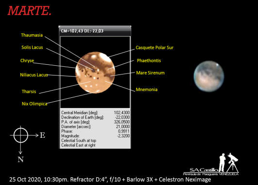 Marte. 25 de octubre de 2020. Telescopio Celestron 11 + cámara ZWO 120 MC + Barlow 2X. Crédito: Jesús López, ALDA, Guarenas, Venezuela. |