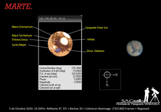 Marte. 05 de octubre de 2020. Telescopio NexStar 8 SE + cámara Svbony sv 305 + Barlow