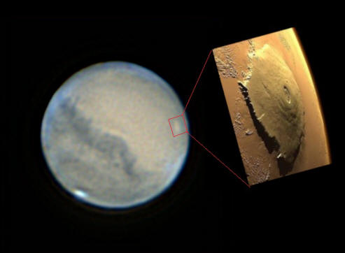 Marte. 14 de octubre de 2020. Detalle del Monte Olimpus. Telescopio NexStar 8 SE + cámara Svbony sv 305 + Barlow 2X. Crédito: Jacinto Artigas. |
