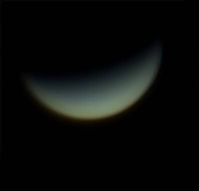 Venus. 22 de abril de 2020. Telescopio refractor Vixen 103 S ED + cámara ZWO 120 MC - S + Barlow 2.5X. video apilado 10 segundos. Crédito: Ernesto Romero, Bucaramanga, Colombia. |