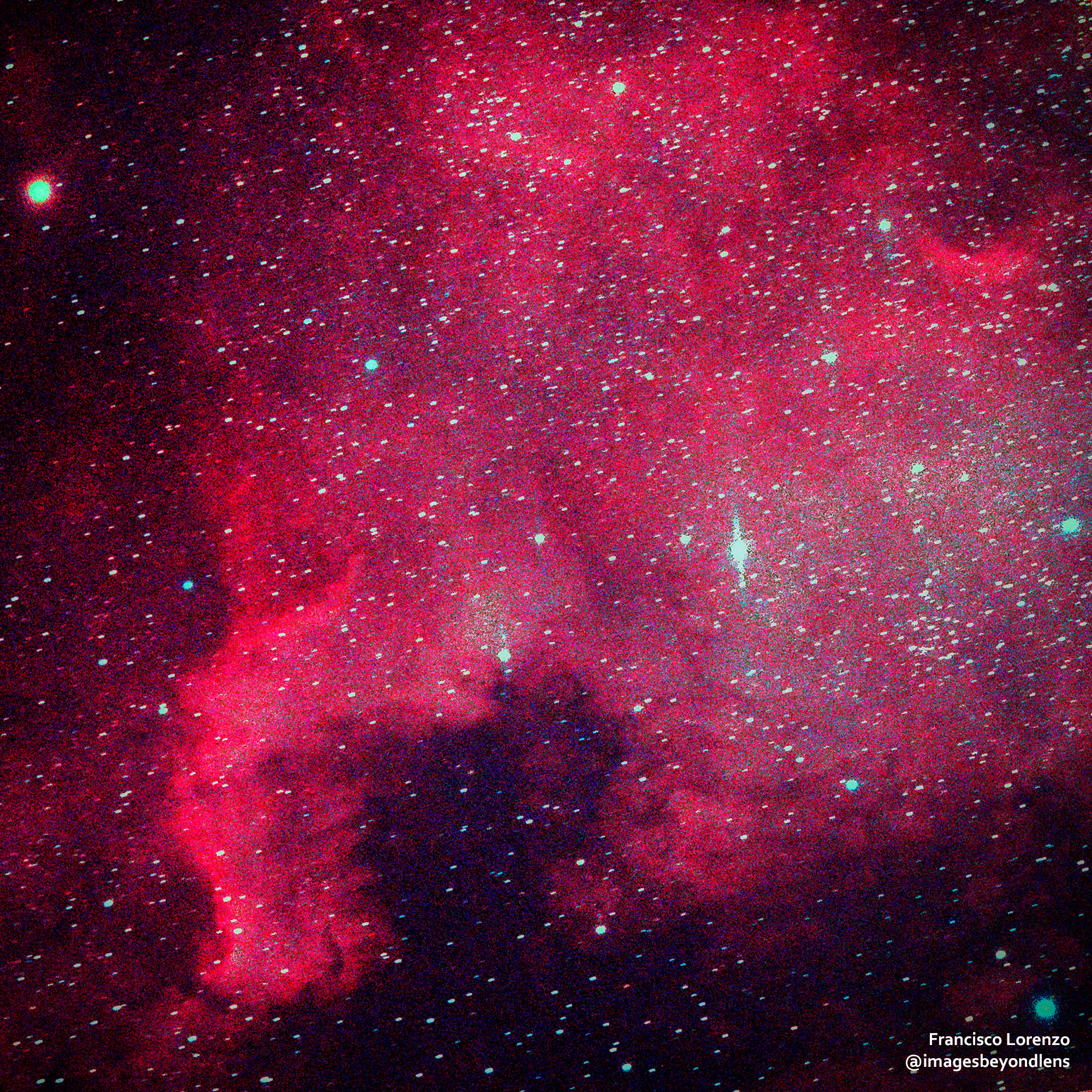La Nebulosa Norteamérica es una región de emisión situada en la constelación del Cisne (Cygnus). Llamada también Caldwell 20, se encuentra a unos 2.600 años luz y su área es equivalente al de la Luna Llena. Su magnitud visual es de 4m, por lo que en las noches oscuras, se puede observar como una débil mota de luz en el firmamento.