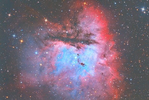 La imagen resultante es una integración de múltiples tomas con filtros R, G, B, Hidrógeno-alfa y Oxígeno-III, usando una cámara QHY 600 unida a un telescopio.