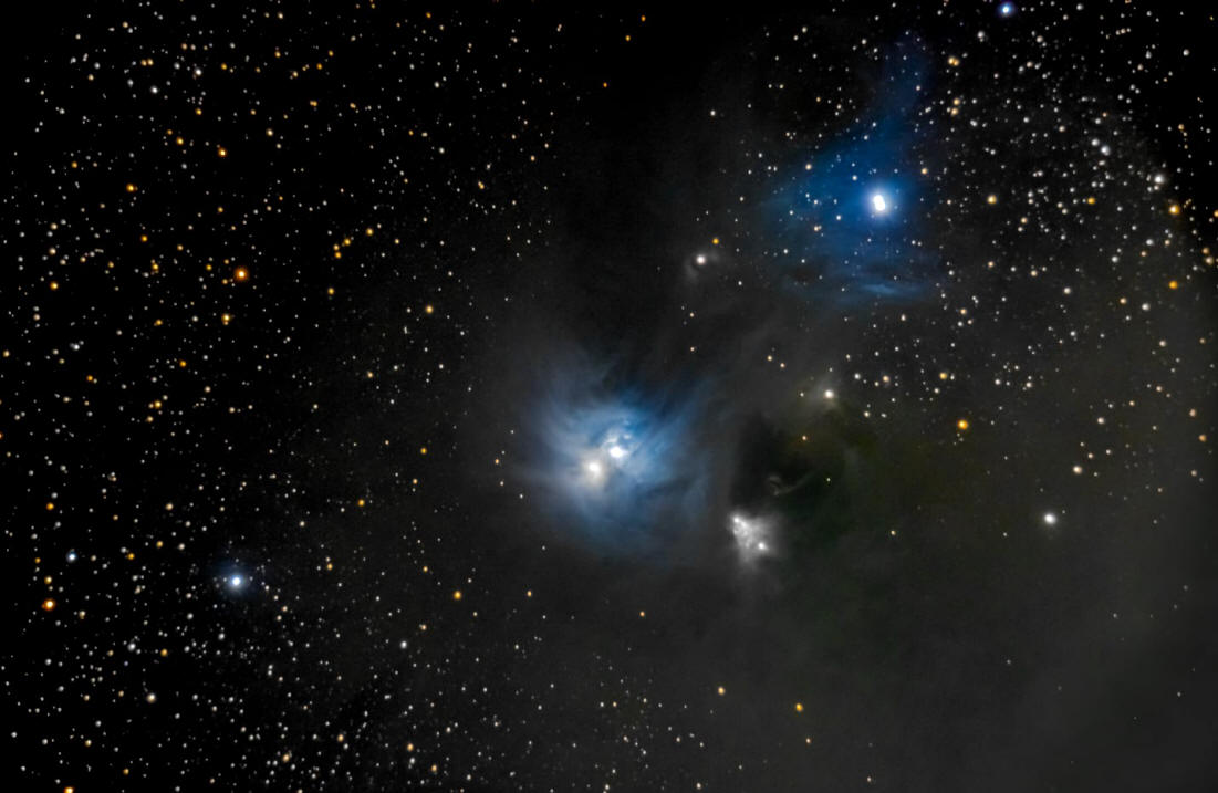 NGC 6729, también conocida como Caldwell 68, es una preciosa nebulosa de reflexión (de ahí su color azul) de la nube molecular de Corona Australis. Está ubicada a unos 400 años luz
