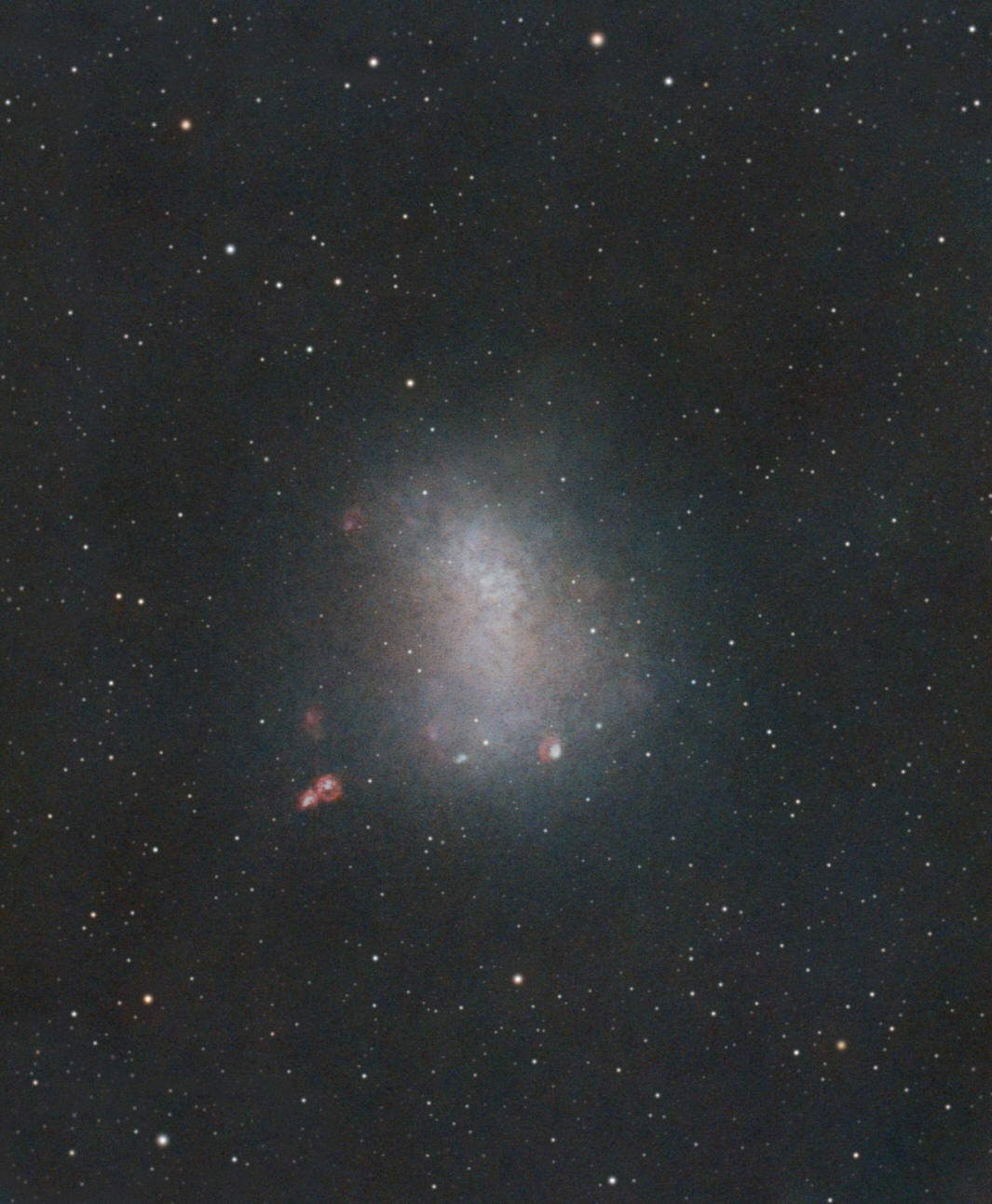 La Galaxia de Barnard está llena de jóvenes estrellas azules, y tal como se captó en la imagen, está moteada por el resplandor rosado del hidrógeno de las regiones de formación estelar.