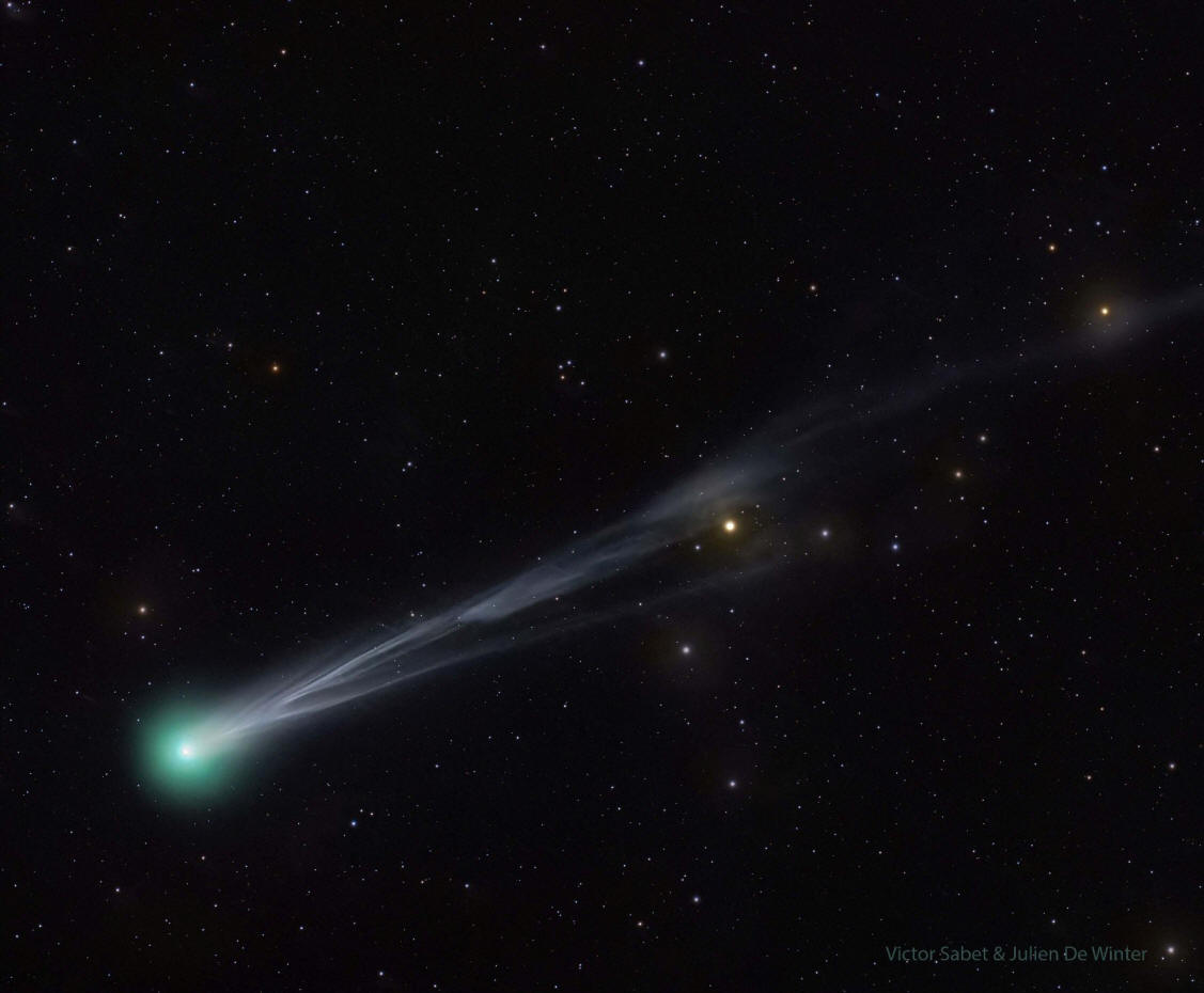 El cometa C/2025 A6 (Lemmon) ya en quinta magnitud, es visible con binoculares, y de no ser por su proximidad visual al Sol, pudiera verse a ojo desnudo como una débil y muy pequeña motica de luz difusa desde cielos oscuros incluso.