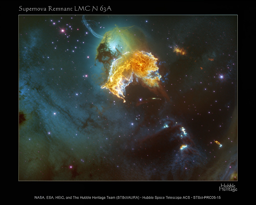 Lo que queda de esta explosión, es uno de los remanentes de supernova más grandes de la LMC: N63A. Muchos de los densos nudos supervivientes se han comprimido y pueden aumentar aún más la tasa da formación estelar del área.