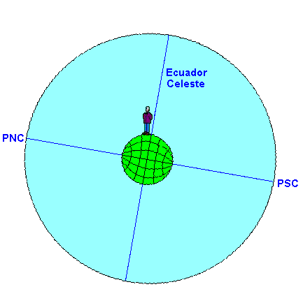 Norte Celeste (PNC) y el Polo Sur Celeste (PSC). De manera similar, la proyección del