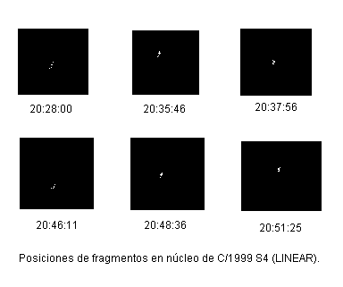 El cometa C/1999 S4 (LINEAR) se fracturó en varias partes el 26 de Julio del 2000. En el Observatorio Taya Beixo, realizamos un seriado fotográfico del cometa.