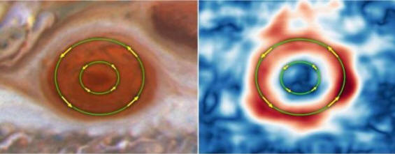 El flujo de materia en las bandas atmosféricas de Júpiter rompen con la distribución de masa del planeta. Aprovechando esta circunstancia, los instrumentos Doppler a bordo de la sonda espacial Juno lograron medir una asimetría existente en el campo magnético del planeta, provocada por los flujos internos en la atmosfera baja de Júpiter. Tal asimetría permitió a los investigadores a establecer que los jets (o corrientes) que se desplazan en dirección Este - Oeste en el planeta poseen una profundidad de 3.000 kilómetros.