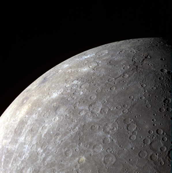 Hemisferio Sur de Mercurio. Imagen obtenida por la sonda MESSENGER, de la NASA. |