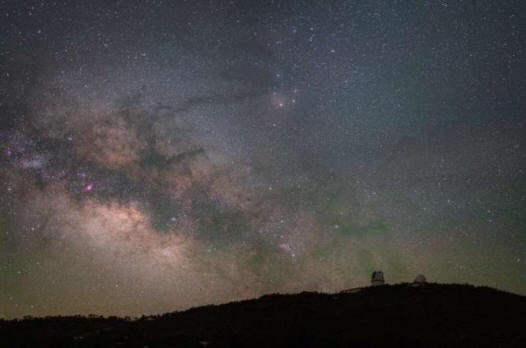 La Vía Láctea se eleva sobre las cúpulas del Monte Locke del Observatorio McDonald, mostrando los cielos oscuros de la región. Crédito: Stephen Hummel/Observatorio McDonald.