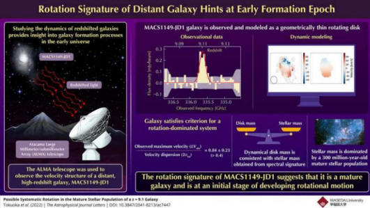 "La velocidad de rotación de JD1 es mucho más lenta que la que se encuentra en las galaxias de épocas posteriores y en nuestra galaxia, y es probable que JD1 se encuentre en una etapa inicial de desarrollo de un movimiento de rotación", dice Inoue. Con el Telescopio Espacial James Webb lanzado recientemente, los astrónomos ahora planean identificar las ubicaciones de estrellas jóvenes y más viejas en la galaxia para verificar y actualizar su escenario de formación de galaxias.