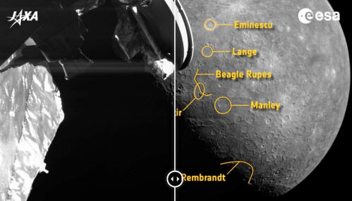 La misión ESA/JAXA BepiColombo ha realizado el tercero de seis sobrevuelos de asistencia gravitatoria en Mercurio, tomando imágenes de un cráter de impacto con nombre nuevo, así como curiosidades tectónicas y volcánicas a medida que ajusta su trayectoria para entrar en la órbita de Mercurio en 2025.