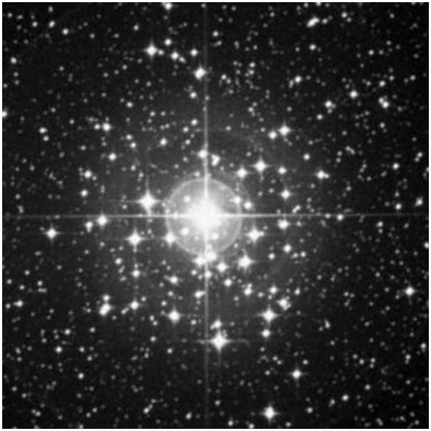 Tau Canis Majoris – cúmulo estelar abierto NGC 2362. Crédito: DSS2.