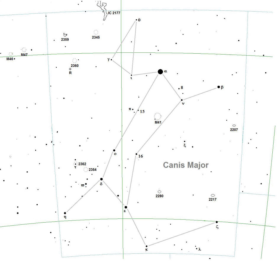 Carta de la constelación del Can Mayor. Crédito: IAU / revista Sky and Telescope.