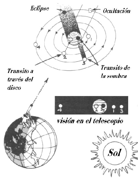En su desplazamiento en torno al planeta Júpiter, sus cuatro satélites más importantes (Io, Europa, Ganímedes y Calixto) pueden producir ciertos eventos, interesantes para la observación y registro astronómico.