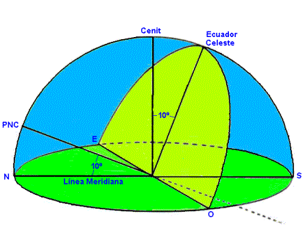 Preste atención que el plano del Ecuador Celeste se encuentra